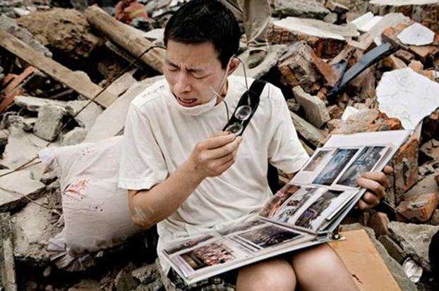 Չինաստանի Սիչուան նահանգի այս բնակիչը երկրաշարժից հետո տան փլատակներում գտել է իր ընտանեկան ալբոմը: Թերթելով հանգուցյալ հարազատների լուսանկարները` նա չի կարողանում արտասուքը զսպել: