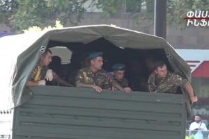 Զինվորական անշուք քայլերթի մասնակիցներին պողոտայից հեռացրեցին բեռնատարներով (Video)
