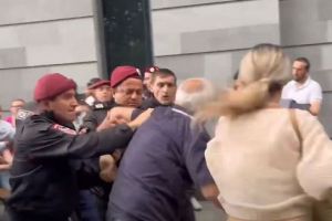 Ինչպես են ոստիկանները բռնի ուժ գործադրում քաղաքացիների վրա ԱԳՆ-ի մոտ (Video)