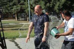 Ճիշտը թացն է. Գյումրիում առաջինը ջրեցին քաղաքապետին (Photo)