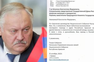 Հրապարակվել է Կոնստանտին Զատուլինին ՀՀ-ում անցանկալի անձ ճանաչելու մասին որոշման փաստաթուղթը (Photo)