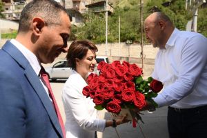 մայնքի ղեկավար Մանվել Փարամազյանը նրան վարդերով է դիմավորել