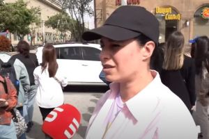 Մի աղջիկ ասում ա՝ մի պոկեք Արցախի դրոշը, սույն տիկին դրոշը պոկելով էտ աղջկա վրա գոռում ա՝ «աղջիկ ջա՜ն, գնայիր կռվեիր». սենց ա ինքը մտահոգվում Արցախի