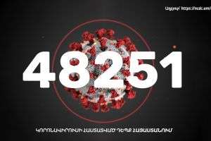 Հայաստանում հաստատվել է կորոնավիրուսով վարակվելու 374, մահվան՝ 3 նոր դեպք․ վարակվածների ընդհանուր թիվը 48251 է, մահվան դեպքերինը՝ 1237