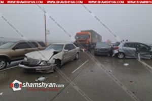 Երևան-Աշտարակ ճանապարհին բախվել են 4 Mercedes, Infiniti, Toyota Corolla, Toyota Camry, Toyota Vitz, 3 Opel և Daf ավտոմեքենաները. կա վիրավոր. խցանումը