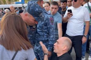 «Մի՛ թքի վրես, չգոռաս, արա», «Հլը մի հատ քեզ շնորհքով պահի»․ ոստիկանի և ցուցարարի վեճը