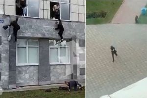 Ճոճվող ակրոբատներ կառավարության շենքի վրա (Video)