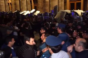 Հրշմշտոց ու ծեծկռտուք կառավարության շենքի առաջ ցուցարարների ու ոստիկանների միջև