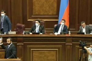 Լարված իրավիճակ` ԱԺ-ում. Հայկ Սարգսյանի ելույթի ժամանակ իշխանությունն ու ընդդիմությունը սկսեցին միմյանց վրա շշեր նետել․