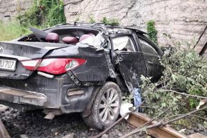 տվածում Hyundai մակնիշի ավտոմեքենան ժայռից ընկել է երկաթուղային գծերի վրա. երեք մարդ հոսպիտալացվել է