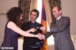 2002 թվականին Արսինե Խանջյանը մեծ ոգևորությամբ անձնագիր է ստացել նաև Ռոբերտ Քոչարյանից (Photo)