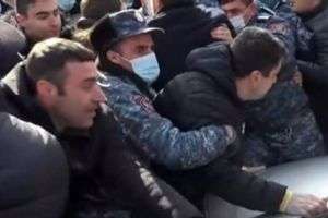 Ոստիկանները քաշքշելով բերման են ենթարկում նախագա