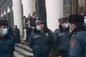 Շիրակի մարզպետարանի շենքում գտնվող վարչապետին հսկում է ոստիկանական շարասյունը