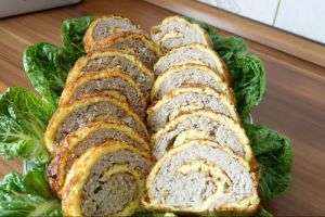 Շերտավոր խմորում բրնձով ու սնկով եփված միս