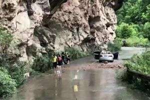 Հսկայական քարը ընկել է մեքենայի վրա, որի ներսում ուղևորներ կային