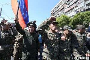 Բողոքի ցույցերին են միացել զինվորական հագուստով մարդիկ