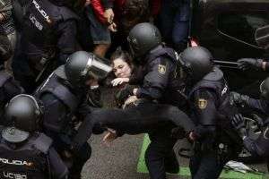 Իսպանիացի ոստիկանները ծեծում են հանրաքվեին մասնակցող կատալոնացիներին (Photo, Video)
