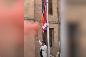 13 տարեկան Արան, որին երեկ բերման էին ենթարկել, Արցախի դրոշն է բարձրացրել Կոնսերվատորիայի մոտ (Video)