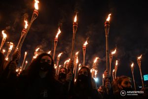 Ջահերով երթի մասնակիցները Ծիծեռնակաբերդի հուշահամալիրում ծաղիկներ խոնարհեցին Ցեղասպանության զոհերի հիշատակին (Photo, Video)