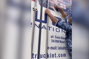 Ադրբեջանցի ասկյարը Գորիս֊Կապան ճանապարհի Որոտանի հատվածում կանգնեցրել և քերում է մեր միկրոավտոբուսի վրան պատկերված Արցախի դրոշը (Video)