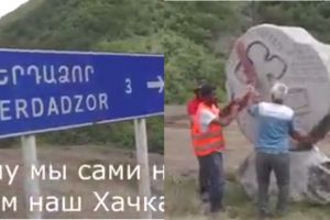 Ադրբեջանցիները տեղափոխել են Բերձորի ճանախարհին տեղադրված խաչքարը (Video)