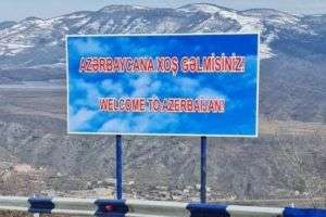 Ադրբեջանցիները Կապան քաղաքից Ճակատեն ու մի շարք միջհամայնքային ճանապարհին տեղադրել են «Բարի գալուստ Ադրբեջան» ցուցանակ և դրոշներ (Photo)