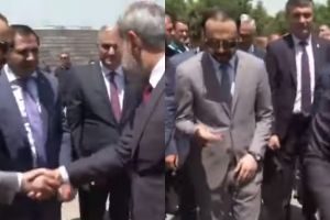Եռաբլուրում Փաշինյանին բարևելուց հետո Ավինյանը ձեռքը մաքրեց