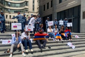 «Մինչև լավ ապրելը դեռ պետք է ապրել». քաղաքացիները արյունոտ ձեռքերով շապիկներ են դրել ԱԳՆ շենքի դիմաց