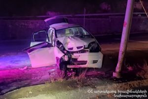 Առինջ գյուղի կամարի մոտակայքում Mitsubishi-ն բախվել է լուսացույցին