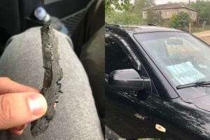 Ադրբեջանական զինուժի կրակի տակ հայտնված լրագրողական խմբի ավտոմեքենան (Photo)