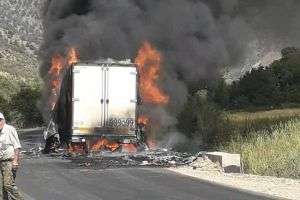 Երևան–Մեղրի ճանապարհին բեռնատար է այրվում․ ճանապարհը երկկողմանի փակ է (Photo)
