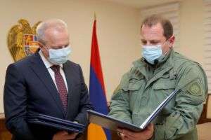 ԱՀ ԱԻ պետական ծառայության տնօրենը այսօր ՌԴ ԱԻՆ պաշտոնյաների հետ քննարկել է խաղաղ բնակավայրերում ծավալվող շինարարության և ենթակառուցվածքների վերականգնմանն ուղղված հարցերի լայն շրջանակ