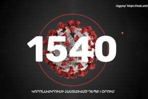 Հայաստանում հաստատվել է կորոնավիրուսով վարակվելու 1540, մահվան՝ 11 նոր դեպք