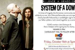 System of a Down խմբի անդամները բարեգործական միջոցառում են կազմակերպել, որից ստացված ողջ հասույթն ուղղվելու է «Հայաստան» համահայկական հիմնադրամին
