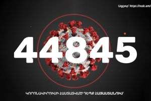 Հայաստանում հաստատվել է կորոնավիրուսով վարակվելու 62, մահվան՝ 3 նոր դեպք․ վարակվածների ընդհանուր թիվը 44845 է, մահվան դեպքերինը՝ 1175