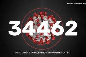 Հայաստանում հաստատվել է կորոնավիրուսով վարակվելու 461, մահվան՝ 15 նոր դեպք․ վարակվածների ընդհանուր թիվը 34462 է, մահվան դեպքերինը՝ 832