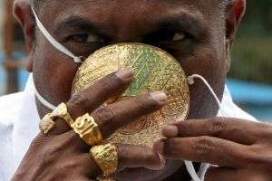 Հնդկաստանի բնակիչը ոսկուց պատրաստված դիմակ է կրում (Photo)