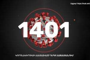 Հայաստանում հաստատվել է կորոնավիրուսով վարակվելու 62 նոր դեպք, մահացել է 2 պացիենտ. վարակվածների ընդհանուր թիվը 1401 է, մահվան դեպքերինը՝ 24