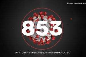 Հայաստանում կորոնավիրուսով վարակման հաստատված դեպքերի ընդհանուր քանակը դարձավ 853, ունենք մահվան 8 դեպք