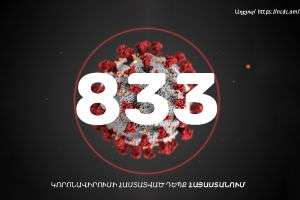 Հայաստանում կորոնավիրուսով վարակման հաստատված դեպքերի ընդհանուր քանակը դարձավ 833, ունենք մահվան 8 դեպք