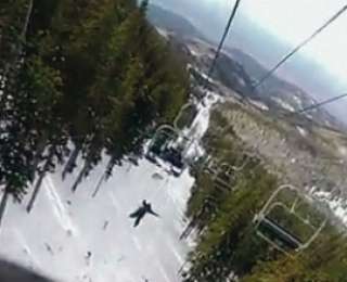 Лыжник выжил, упав с 14-метрового подъемника (Видео)