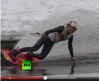 Спортсмен совершил экстремальный зимний «заезд» по рекам и каналам Санкт-Петербурга (Видео)