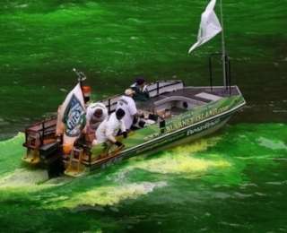 Зеленая река в Чикаго - подарок жителям ко Дню Святого Патрика (Фото)