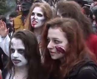 Зомби-парад под проливным дождём прошёл в Праге (Видео)