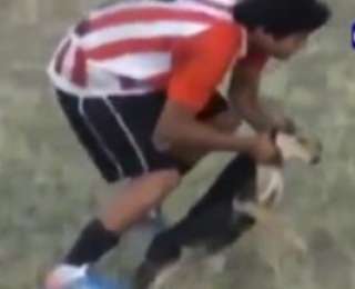 Игрок жестко расправился с выбежавшим на поле псом (Видео)