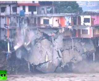 Сильнейшее наводнение в Индии смывает жилые дома (Видео)