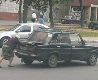 Пожилая пара устроила фотосессию на фоне перевернутого ими автомобиля