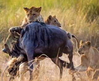 Мама-львица учит охотиться своих львят (Фото)