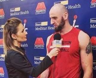 Баскетболиста сложно вместить нормально в кадр рядом с ведущей