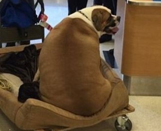 Разжиревший пес, не умеющий ходить, летает с хозяйкой первым классом